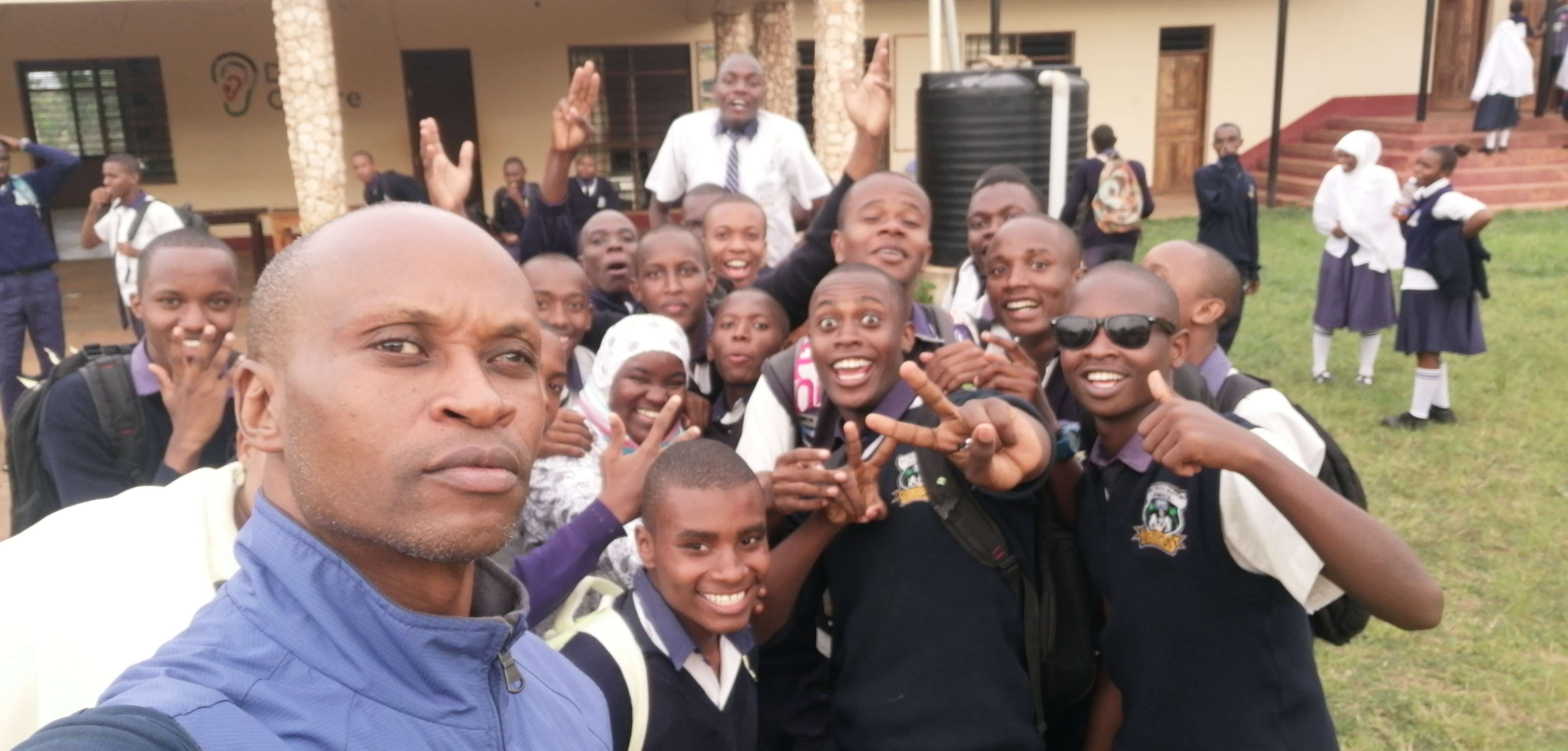 English teacher with students during a students trip to Malindi for a symposium